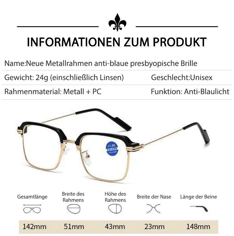 Neue Presbyopiebrille aus Metall mit Anti-Blaulicht